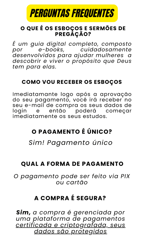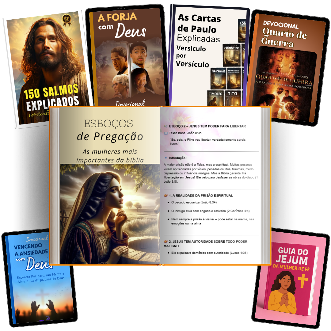 Com esses Esboços, você terá acesso imediato a 1000 esboços temáticos, prontos para te ajudar a preparar mensagens impactantes — seja para cultos de mulheres, reuniões, congressos ou devocionais pessoais.